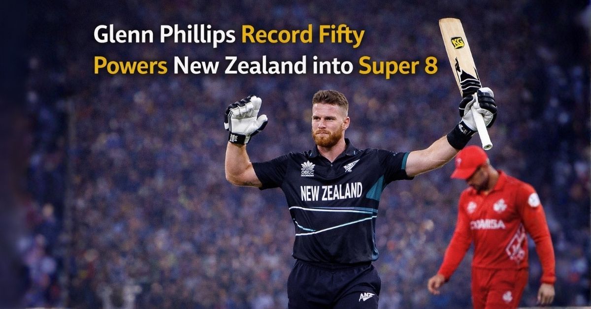 New Zealand booked their place in the Super 8s in dominant style as Glenn Phillips produced a blistering knock to dismantle Canada’s resistance, sealing an eight-wicket victory with plenty to spare. In a match that briefly promised a contest, Phillips’ record-breaking fifty ensured the Black Caps cruised home with authority.